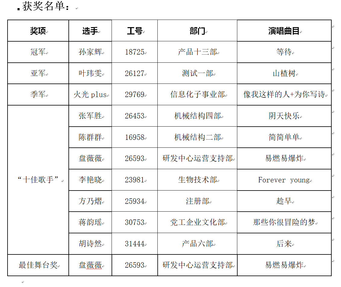 经过激烈角逐,由大众评审团和专业评审团进行现场打分,最终,产品十三部的孙家辉获得第三届“聚光好声音”大赛冠军,测试中心的叶玮雯获得亚军,信息化子事业部的火光Plus组合(杨博文、申屠易挺)获得季军。