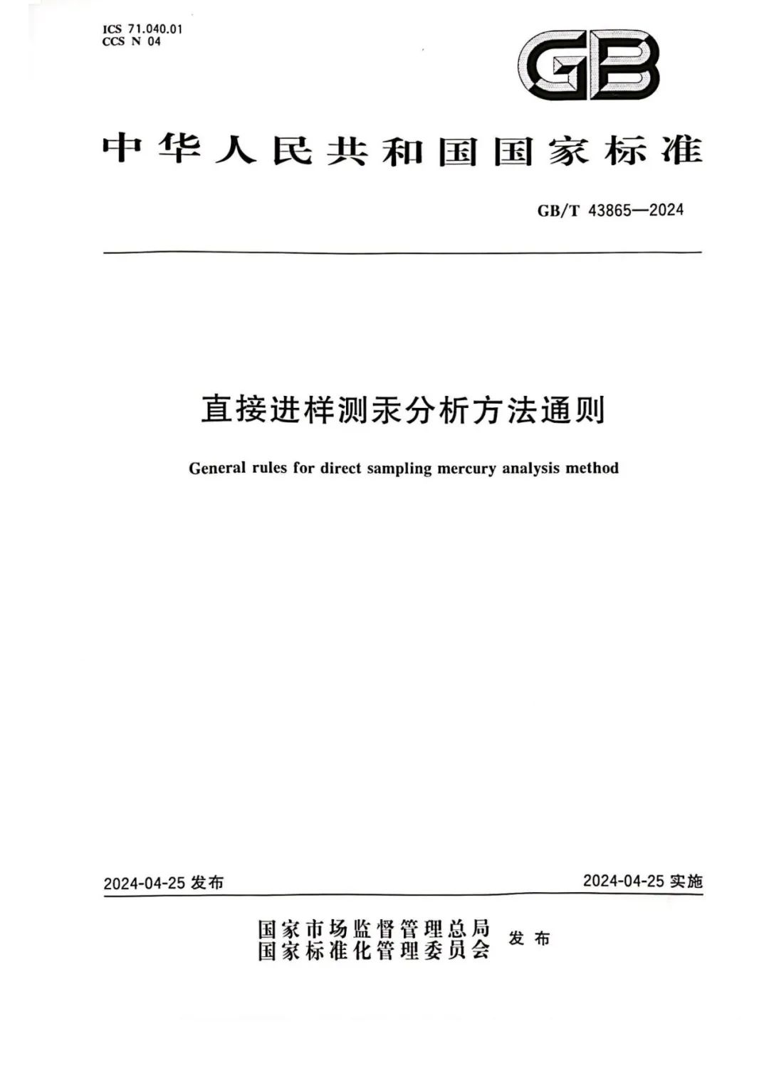 近日,聚光科技(杭州)股份有限公司(以下简称:聚光科技)旗下子公司北京吉天仪器有限公司(以下简称“吉天仪器”)荣幸地参与了GB/T 43865-2024 《直接进样测汞分析方法通则》(4月25日发布并实施),GB/T 43968-2024《高效液相色谱-原子荧光光谱仪联用分析方法通则》(4月25日发布;11月1日实施)两项国家标准的起草工作。