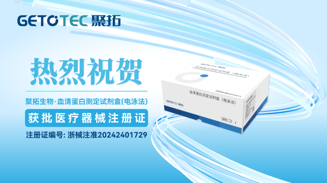 聚光科技生命科学板块旗下杭州聚拓生物科技有限公司自主研发的血清蛋白测定试剂盒(电泳法),获医疗器械注册证!(注册证编号:浙械注准20242401729)