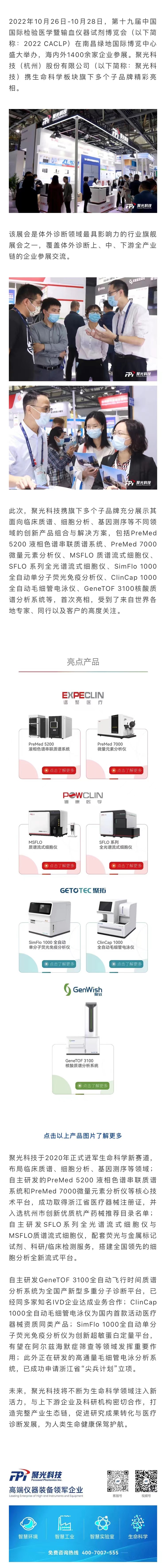 聚光科技携生命科学板块旗下 创新产品与解决方案 亮相2022 CACLP