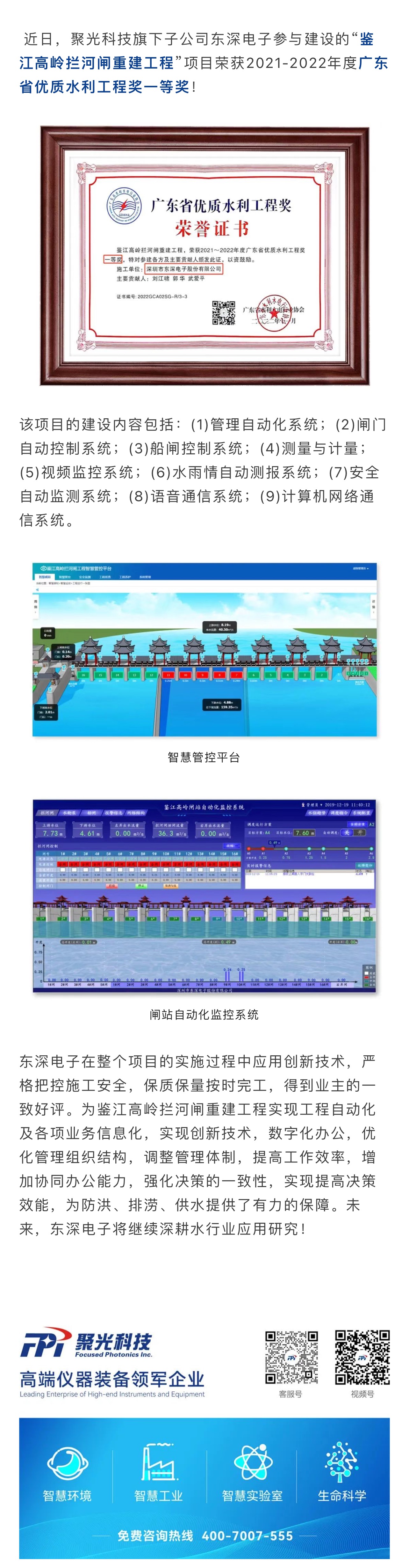 智慧环境 | 喜报!!!东深电子荣获省级优质水利工程一等奖