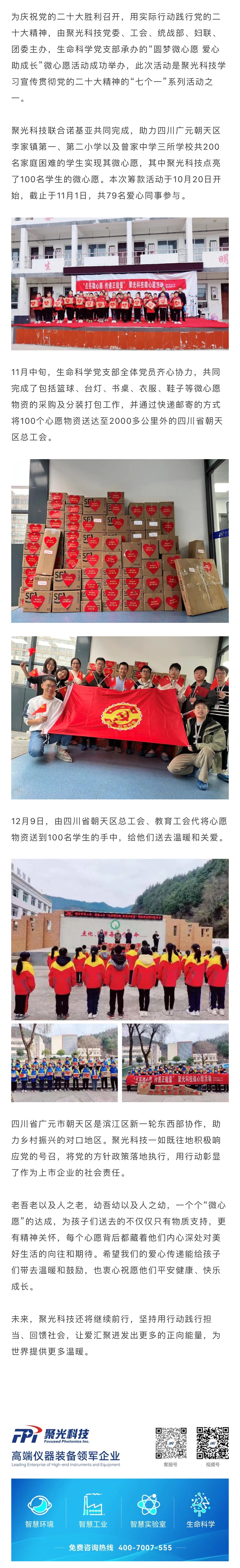社会责任 | 聚光科技“圆梦微心愿 爱心助成长”微心愿活动取得圆满成功