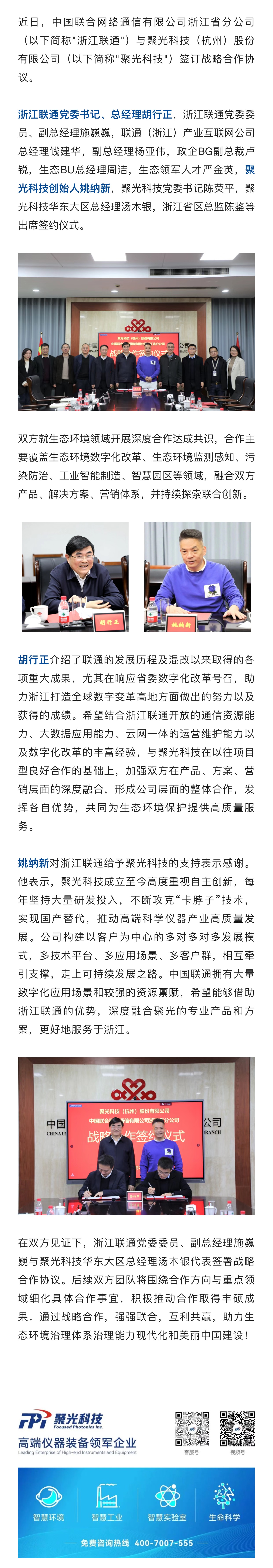 战略合作 | 聚光科技&浙江联通强强联合,助力生态环境建设