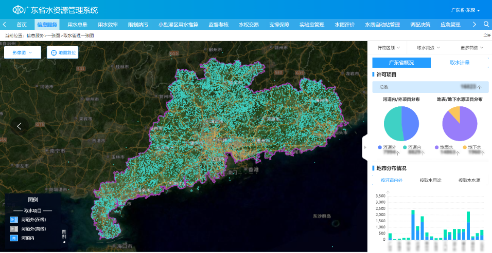 广东系统上线至今,平台汇聚了基础数据约25万条、监测数据约6.5亿条、业务数据约1.1亿条、空间数据约7万条、多媒体数据约624G,月最高访问量达到3万人次,最严格水资源管理制度考核三年位列优秀,取得了明显应用成效。
