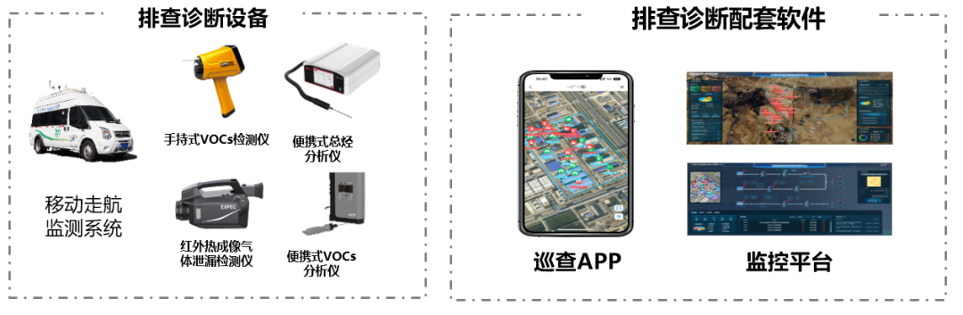以“点、线、面”形式在园区布点大气预警监测站、区内路边气站、恶臭因子监测站等,重点排查烯烃、芳香烃、醛类等VOCs和异味污染物,并使用VOCs移动监测走航车每日持续开展走航监测。