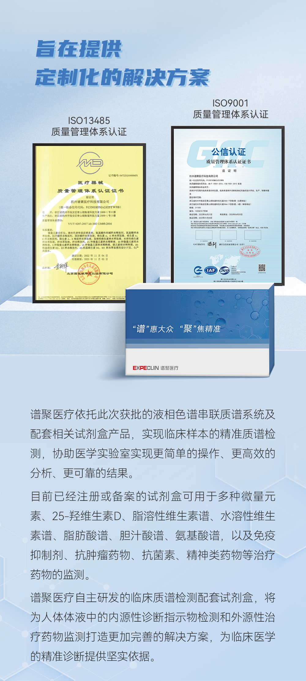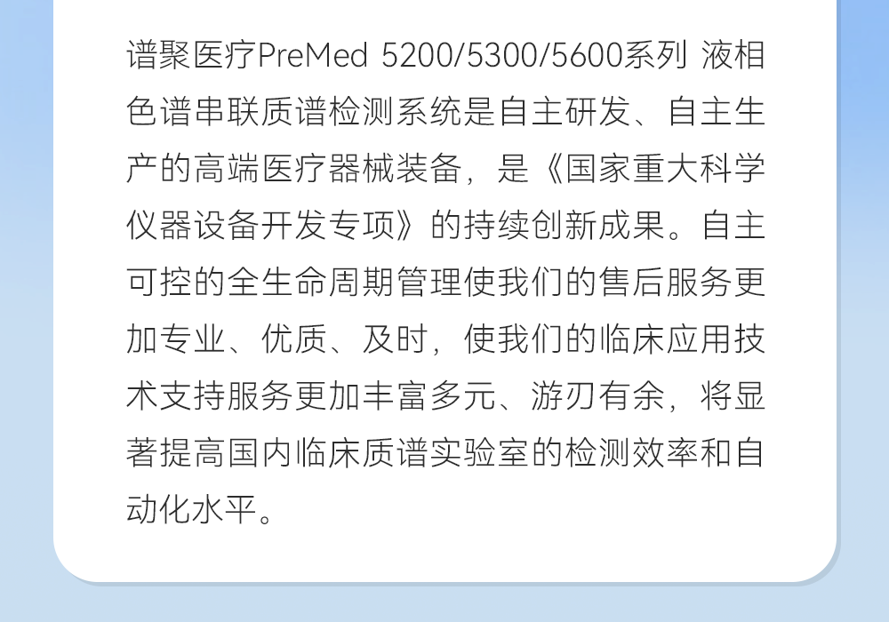 “国家重仪专项,承载中国智造丨质谱技术积淀,造就卓越性能”,谱聚医疗将竭诚为客户提供集成化、自动化、标准化和流程化的临床质谱解决方案。