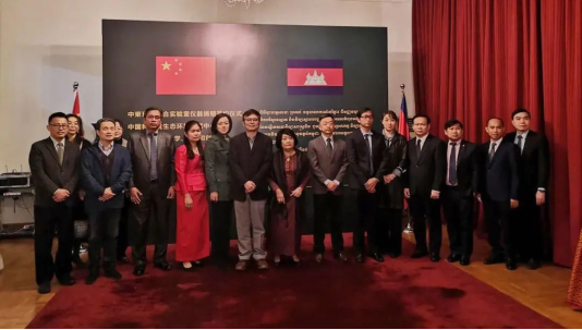 12月1日,中国-柬埔寨“一带一路”食品工业联合实验室-中方援助试验仪器设备捐赠仪式、质谱应用合作实验室揭牌仪式在柬埔寨·金边进行。