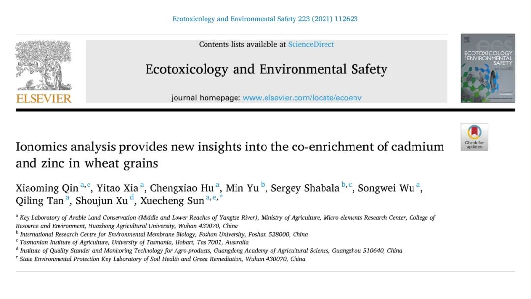 华中农业大学通过使用谱育科技ICP-MS测定了不同土壤污染浓度下231个品种冬小麦籽粒镉、铅、铁、锰、铜、锌、钼等15种元素含量,筛选出冬小麦钼镉高低效积累品种各15个,并发现冬小麦籽粒镉锌共富集现象,为镉污染土壤上冬小麦的科学种植与生产及在富锌土壤上筛选镉低积累作物品种提供了技术指导和参考意义。