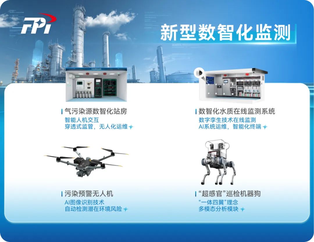 通过“硬件+算法+软件”深度融合,聚光科技打造了数智化水质在线监测系统、气污染源数智化站房、污染预警无人机、“超感官”巡检机器狗等,实现状态实时感知、远程控制与智能预警,升级园区智能感知体系。