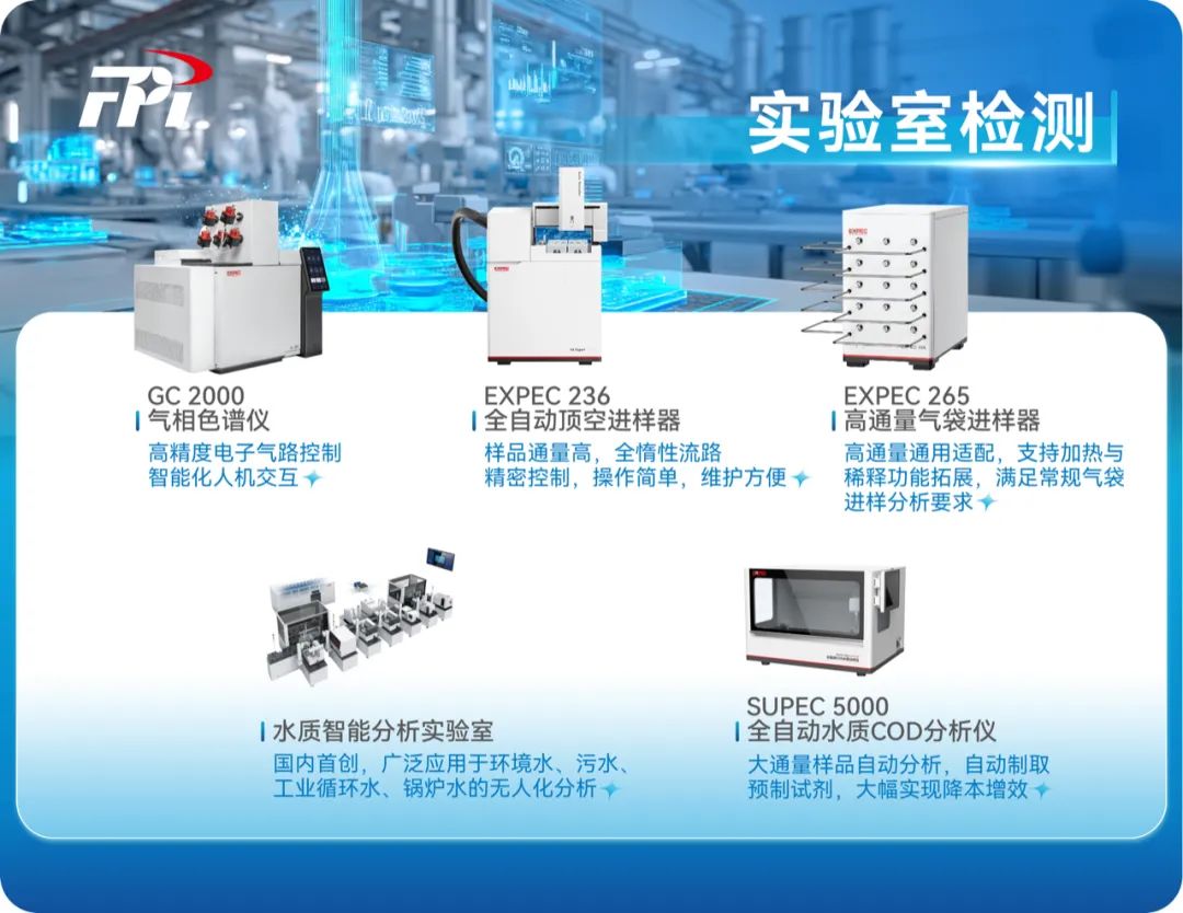 基于自主构建的色谱、质谱、光谱三大分析技术平台,气相色谱仪、全自动水质COD分析仪等设备,具备从样品前处理到数据输出的全流程自动化检测能力,广泛应用于水质分析、油品分析、元素分析、有机分析等场景。