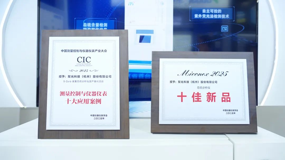 聚光科技凭借《S-Zorb装置总硫分析仪国产替代》项目,荣获“测量控制与仪器仪表十大应用案例”;总硫分析仪则在Miconex 2025评选中入选“十佳新品”,充分彰显了聚光科技在国产替代与自主创新方面的硬实力。