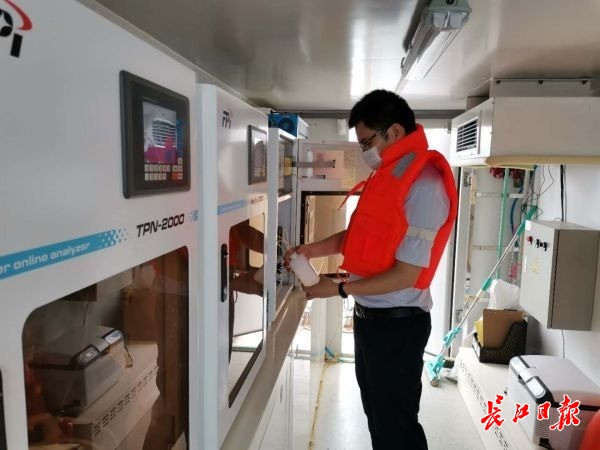 据了解,除这样的水中浮船站点外,武汉市还有水边固定站、小型浮标站等水质自动监测站35个,分布在长江、汉江以及重要的河流、湖泊点位。工作人员每周都会对各个监测站进行设备维护和检查,确保自动监测设备正常运行,全天候监控水质变化。
