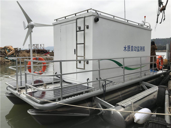 为满足湖泊、水库,及河口等水体水质的自动监测和安全保障应用需求,聚光科技(杭州)股份有限公司结合多年水质在线监测系统研发和集成经验,研制推出了MBoat-3000型浮船式水质自动监测系统。MBoat-3000型浮船式水质自动监测系统采用太阳能供电,集成国标法高锰酸盐指数、氨氮、总磷、总氮分析仪、水质多参数水质分析仪(pH、溶解氧、浊度、温度、叶绿素A、藻密度等),同时可并可根据现场应用灵活配置监测指标。系统采用太阳能供电,可保证连续阴雨天情况下系统稳定运行15天以上。同时,水质监测浮船配有视频监控装置,可远程实时对浮船工作状况进行监控。